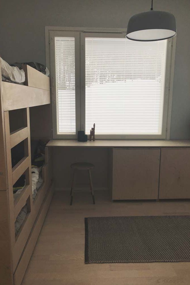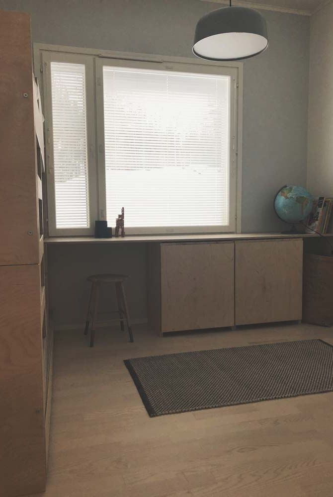 Kotiin suunniteltiin pintamateriaalit, kiintokalusteet sekä koko muu sisustus. Lastenhuoneen kerrossänky sekä työpöytäkokonaisuus suunniteltiin ja toteutettiin yhdessä paikallisen puusepän kanssa.